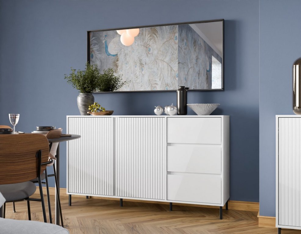W linii AVENALE znajdziesz pięć spójnych brył, zaprojektowanych tak, by łatwo dopasować je do rytmu codziennego życia – niezależnie od tego, czy urządzasz pierwsze mieszkanie w centrum miasta, czy odświeżasz rodzinny salon. Prezentowana komoda w błyszczącej bieli odbija poranne światło, subtelnie rozjaśniając przestrzeń i podkreślając ryflowane fronty. Smukłe, czarne nogi dodają konstrukcji lekkości, a wyważone proporcje sprawiają, że mebel dobrze odnajdzie się zarówno obok sofy, jak i pod dużym lustrem w przedpokoju.