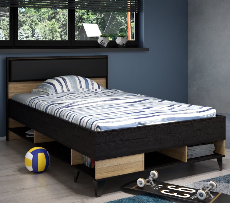 - Łóżko młodzieżowe o wymiarach: 129,5 cm szerokości, 205,6 cm głębokości i 92,6 cm wysokości
