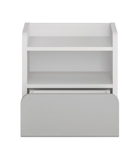 - Funkcjonalna szafka nocna wyposażona w wygodną szufladę, otwartą przestrzeń oraz półkę zabezpieczoną po bokach w taki sposób, aby nic z niej nie spadło.